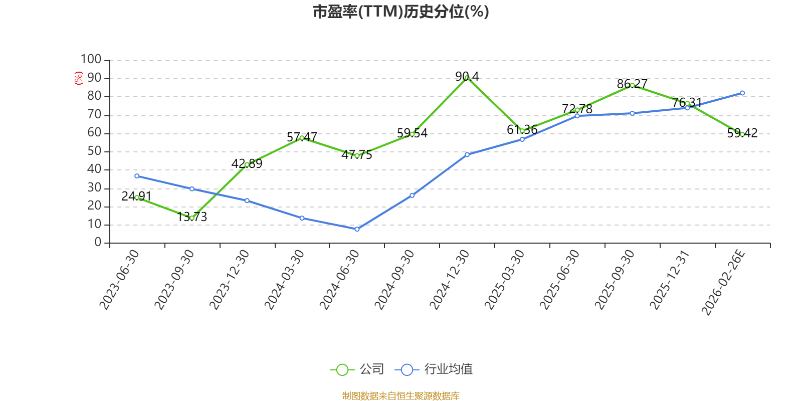 市盈率、市净率为负时,不显示当期分位数,会导致折线图中断。