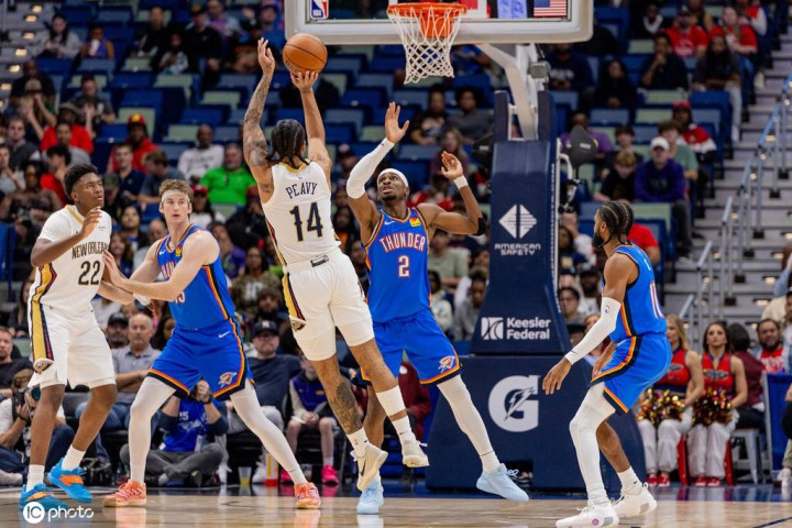 第二节,鹈鹕开局状态堪忧,最大分差一度达到28分。尽管在节中阶段他们展现了反击的能力,将分差缩小至13分,但雷霆的攻击力依然锐利,保持着明显的领先优势。本节比赛,鹈鹕的墨菲三世表现亮眼,砍下11分,其中包括3记三分球。经过两节激战,雷霆以69-56领先。